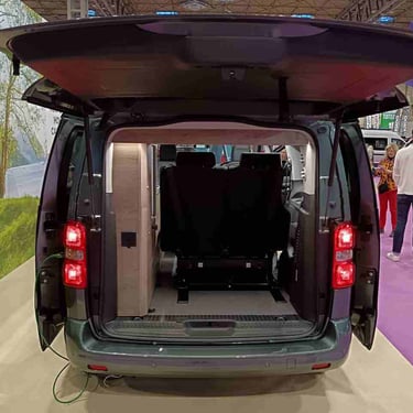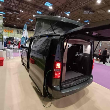 The Citroën Holidays is built on the updated SpaceTourer platform, in collaboration with Slovenian conversion specialist Bravia Mobil. Designed to accommodate up to four occupants, it features a pop-up roof, swivelling front seats, and a fully equipped kitchen.