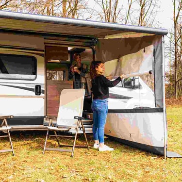 Entry level — Blocker and Sun View Side panels provide basic coverage at lower price points. Solid vinyl or translucent fabric. No windows. Adequate for occasional tourers who need simple wind and privacy protection.